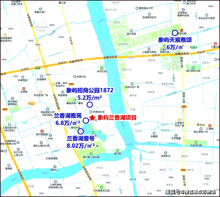上面的科创空间图,又能从另一个角度,说明大零号湾所处于的战略位置。这一横一竖两条科创轴线,几乎把上海最重要的产业区、交通枢纽、城央商圈都连了进去,兰香湖周边俨然形成了一个中央交汇节点。这样的空间格局,纵观上海,好像也很难寻觅到了。