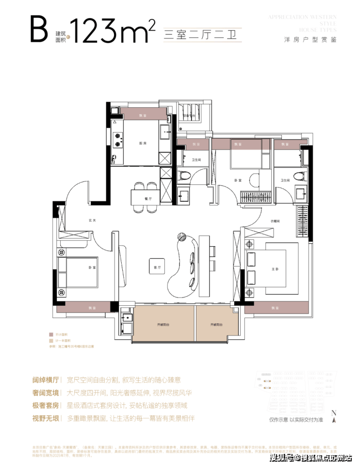 根据目前的方案来看,02-09地块内包含5栋11F小高层佳宅,包含建面约123m坚厅以及横厅两种户型,共计约196套;03-04地块内则包含4栋11F小高层住宅,全部为123m横厅户型,共计约176套!