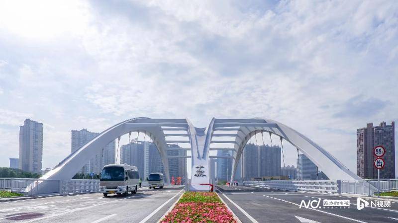 拆除重建后的半岛桥为全钢结构桥梁,采用两跨连续纵向非对称空间钢拱桥结构,全长181米,宽42.3-47.3米,双向六车道,总投入1.6亿元。